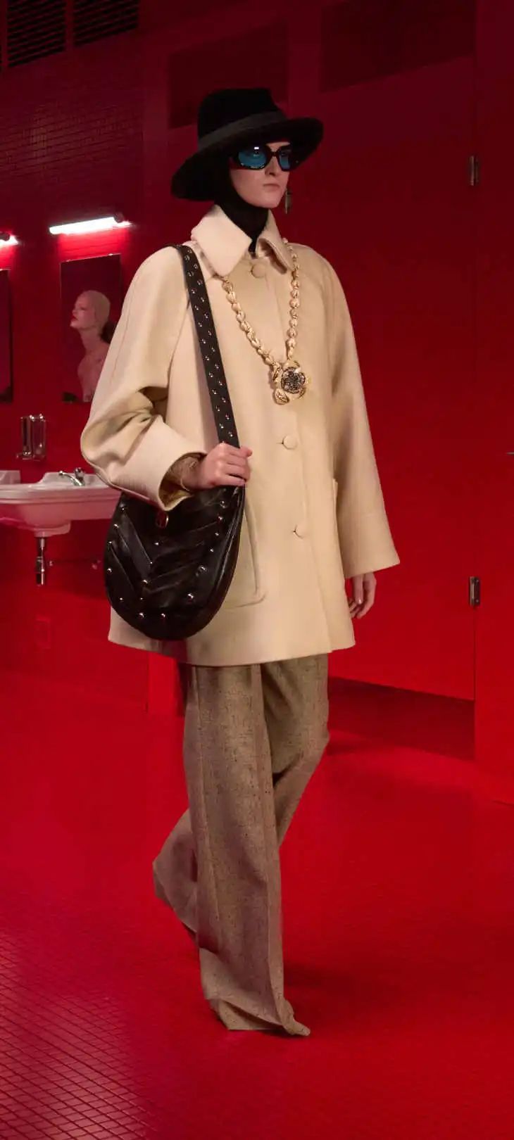 一些声音指控Alessandro Michele自我重复。想起来,Alessandro Michele从2016年面对大众敞开他的宇宙以来,他其实从没有改变过。我们所看到的每一个故事,都是从他对那个宇宙重构后的产物,包括这间「卫生间」。