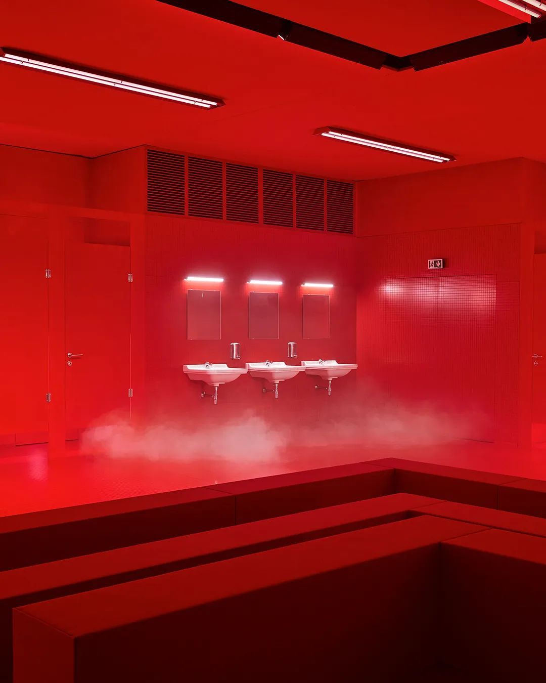 这个壮观的卫生间,很像是夜店的休息室,用Michele的话来说是一个「反乌托邦」,就像是David Lynch电影里的那些灵异空间,似乎一切都可能在这里发生。