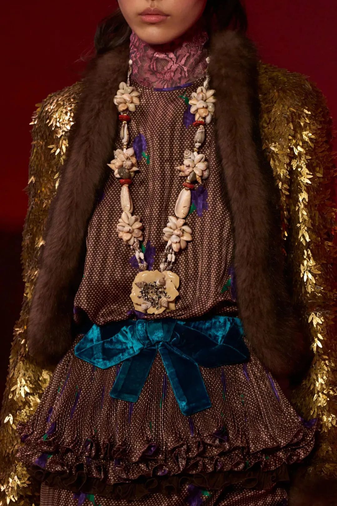 Alessandro Michele恋物一样追求着作品的华美细节,是否也是对于Valentino Garavani日神精神的膜拜,而这些不断叠加的细节能否让Alessandro Michele与Valentino Garavani形成深度共振呢?