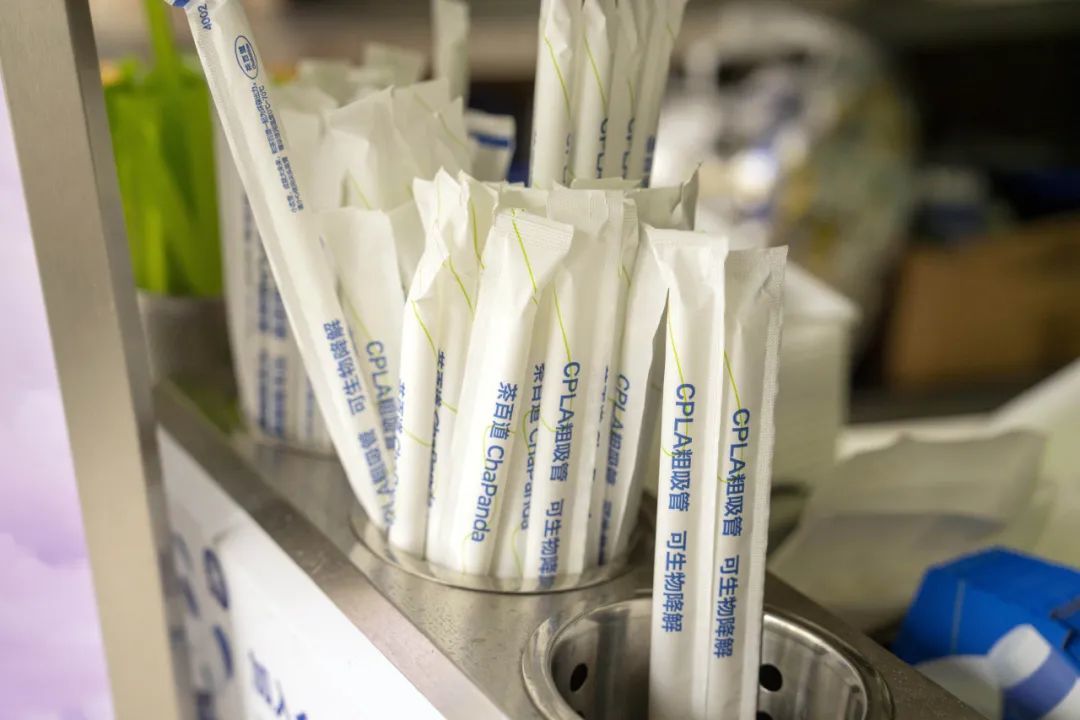 茶百道奶茶店内的吸管