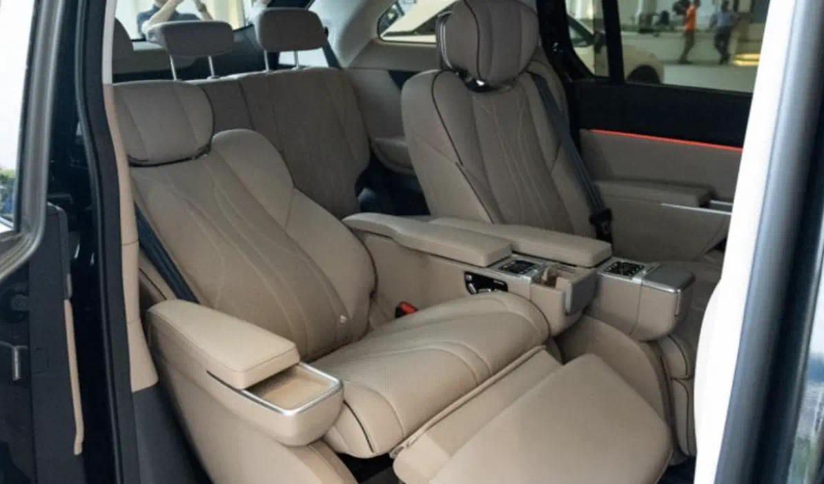 车内空间灵活多变,采用 2+2+3 的标准座椅布局。副驾驶座椅靠背可向后放平,与第二排座椅结合成 “躺椅”;第三排座椅收纳后秒变商务大四座;第二排座椅前移,后舱能形成超大平层。内饰采用山居真木饰件、独特空调出风口造型以及主驾门板雨伞槽等豪华配置,尽显品质。前排配备大尺寸悬浮式液晶仪表和中控屏,搭载第五代智能座舱系统 XOS 天玑,操作便捷流畅。全车配备 23 扬声器 Xopera 音响系统、五温区自动空调、六音区智能语音识别等,提升驾乘舒适性。