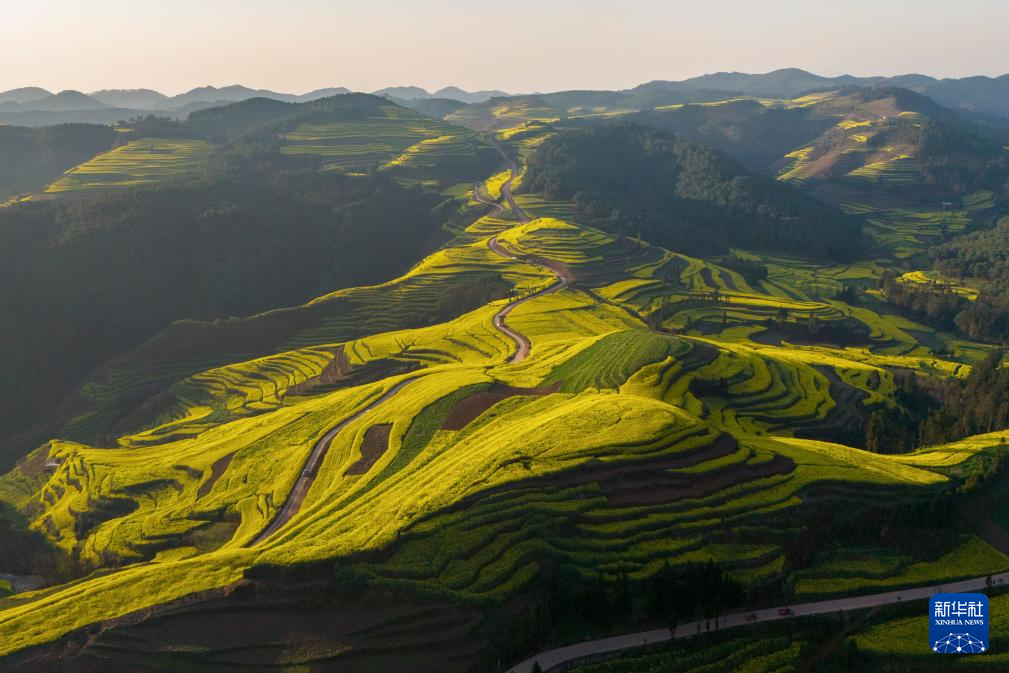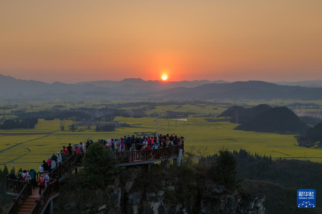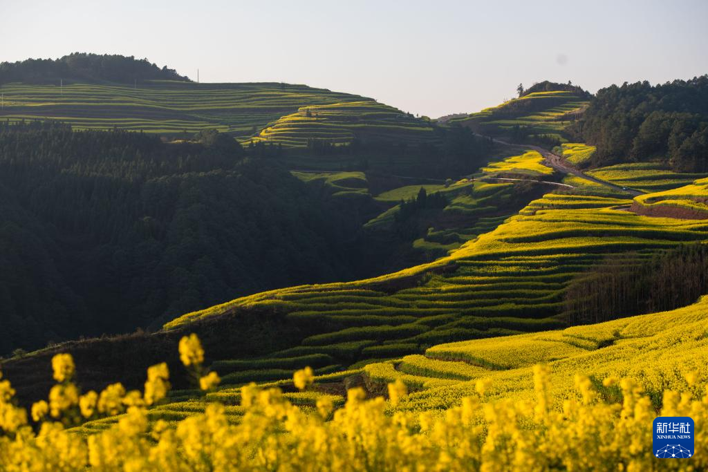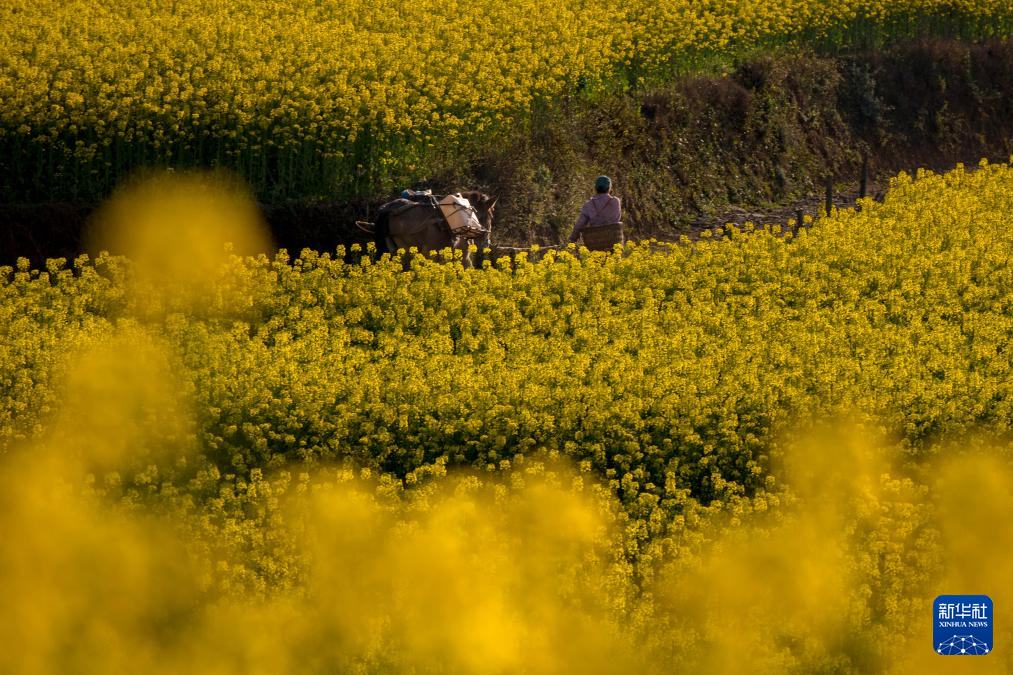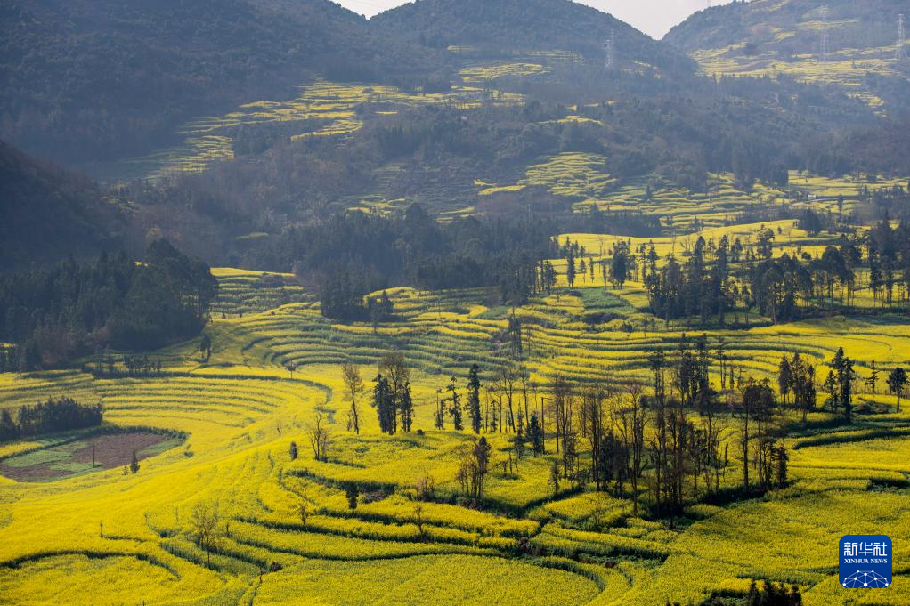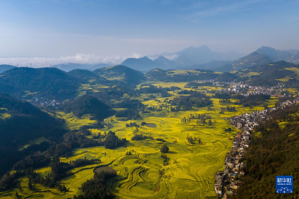 近期,云南省曲靖市罗平县近百万亩油菜花相继绽放,花海与山峦、村寨勾勒出一幅田园春景图,吸引国内外游客纷至沓来,感受春天的气息。