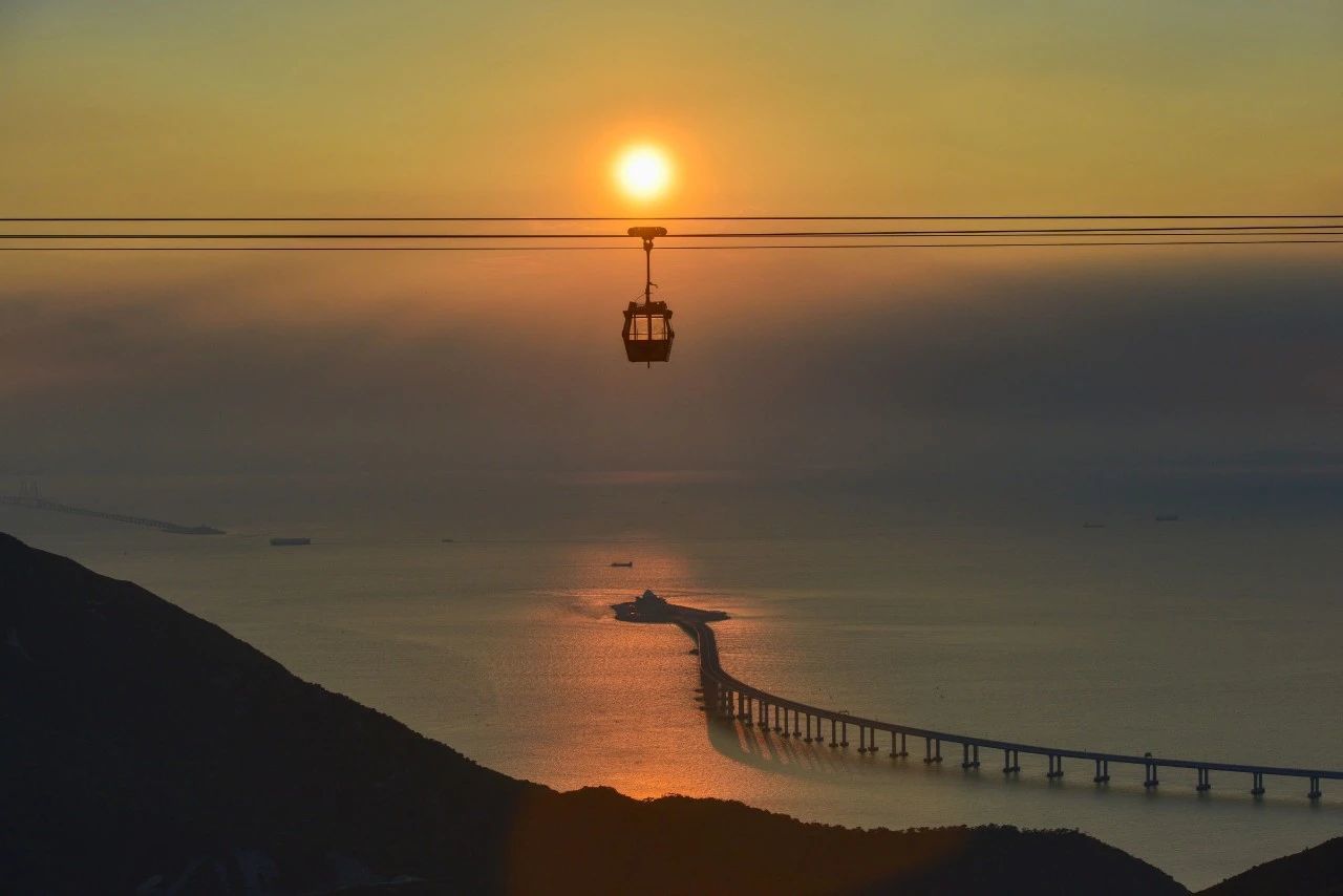 从大屿山俯瞰港珠澳大桥香港连接段。