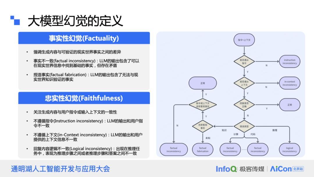 这些错误可能是由于模型没有及时更新知识库,或者未能准确遵循知识库内容导致的,从而产生了误导性的信息。忠实性幻觉则涉及到模型对输入信息的误解或错误总结。这可能表现为模型未能准确遵循指令,或者在生成摘要时引入了原文中不存在的信息,或者输出内容存在逻辑冲突。