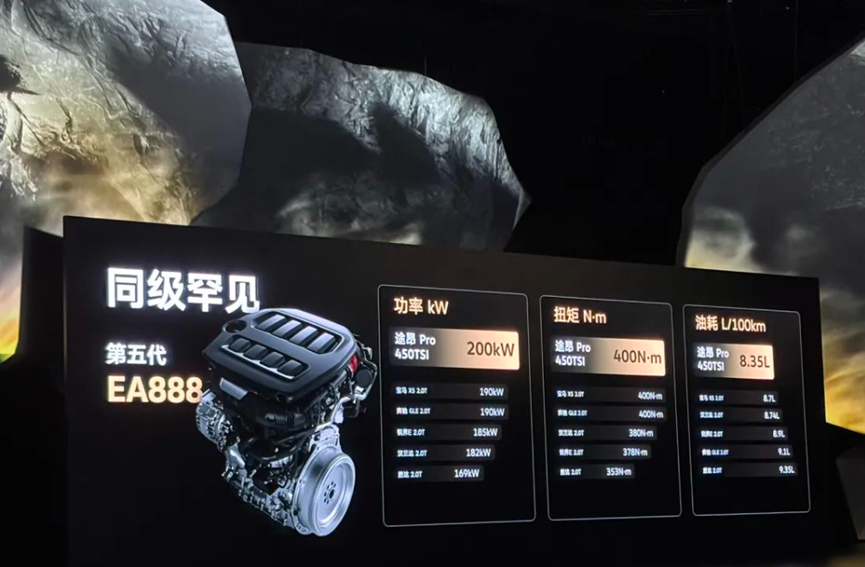 性能上,第五代EA888发动机,成为途昂 Pro的一大杀手锏:200kW的最大功率、400N·m的峰值扭矩,WLTC油耗8.35L/100km。可变截面涡轮增压(VTG)、500Bar高压直喷等前沿技术,让这台2.0T发动机拥有最硬核的实力,刷新了燃油车上限。