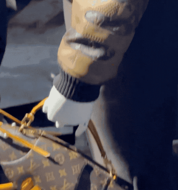 LV 经典的 Vachetta 皮革,搭配上标志性的字母帆布材料,黄色的大钳子、触角,就连一节一节的身体构造都活灵活现,乍一看,还以为是刚从海鲜市场捞出来的。