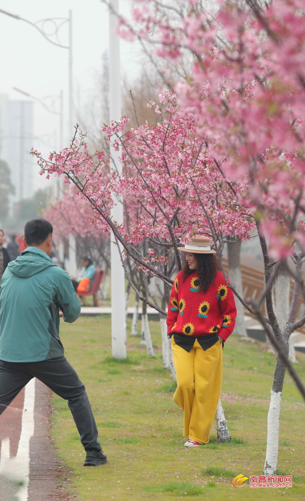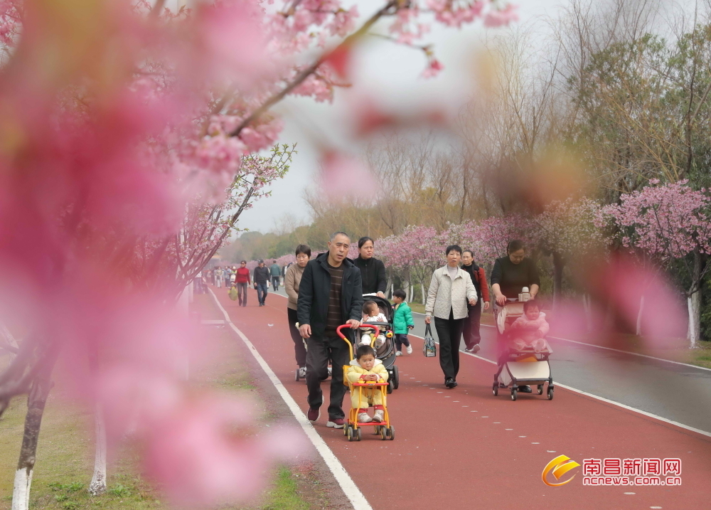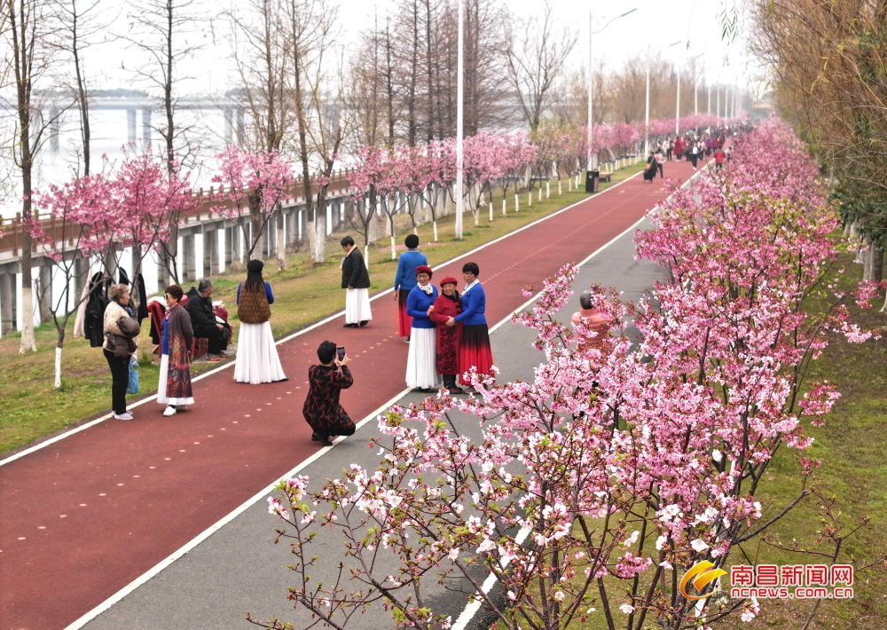 南昌新闻网讯 3月11日,艾溪湖湿地公园东岸1.2公里的樱花长廊,正上演着粉白色的视觉盛宴,这里的早樱已进入全盛模式,樱花舒展着轻盈的花瓣,在湖岸线织就一条流动的云霞锦带,许多市民慕名而来,在此拍照打卡。(洪观新闻记者 魏勇剑 文/图)