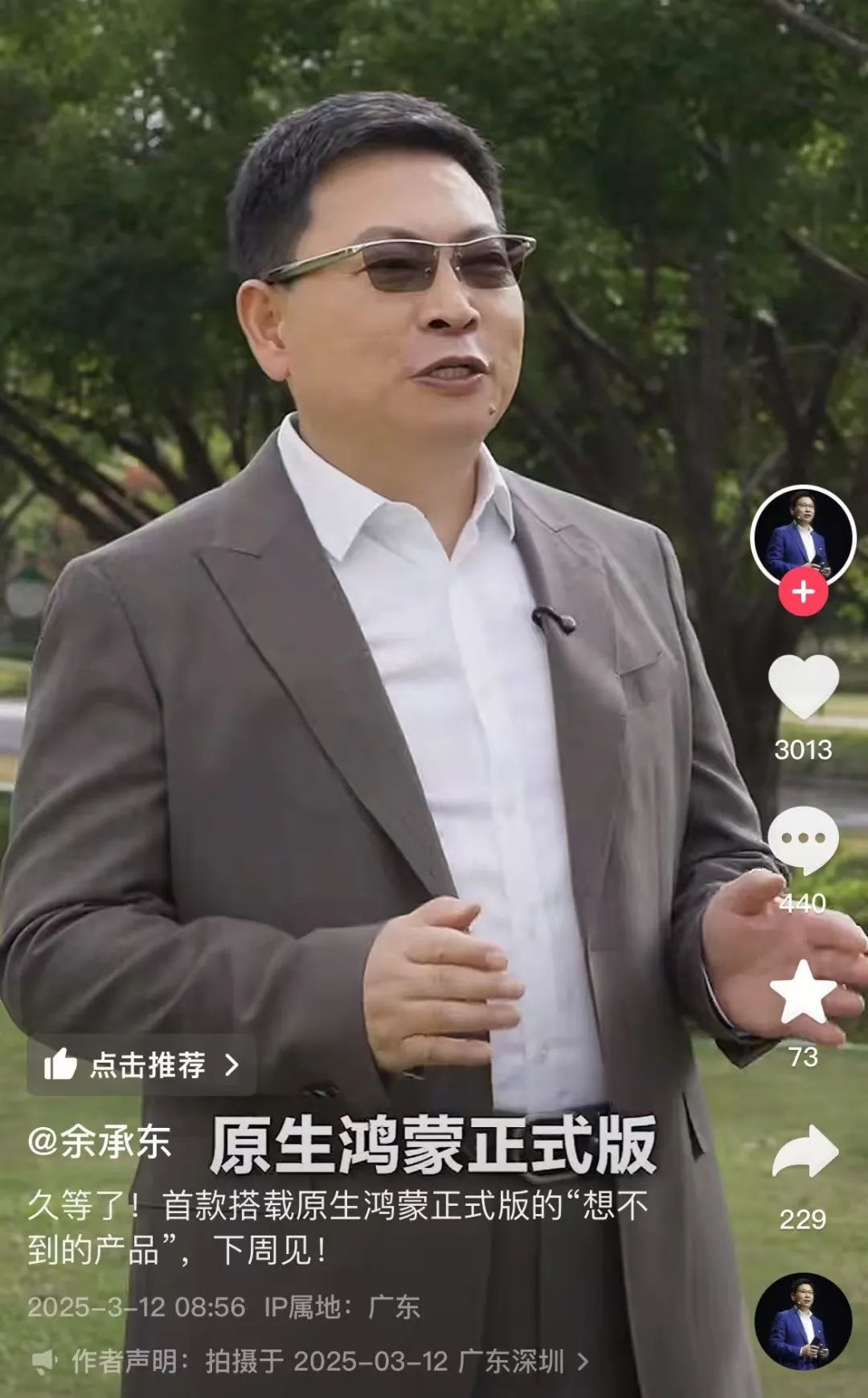 3月12日,华为常务董事、终端BG董事长、智能汽车解决方案BU董事长余承东发布视频,官宣原生鸿蒙正式版手机将发布。“首款搭载原生鸿蒙正式版的‘想不到的产品’,下周见。”