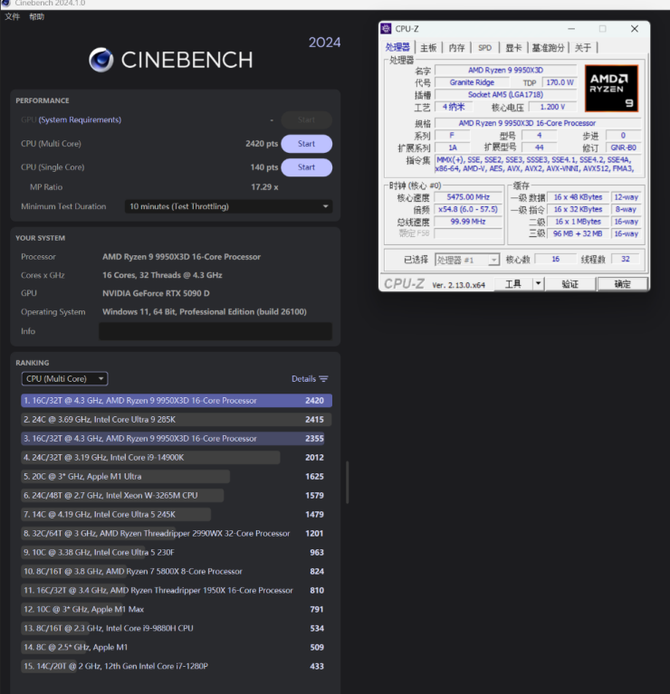 实际性能测试部分:AMD锐龙9 9950X3D旗舰处理器也能稳定运行