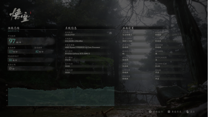 黑神话悟空,默认影视级特效,4K分辨率下,游戏帧数达到97,能够流畅运行。