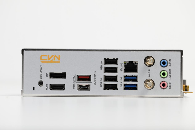 并且主板的I/O区还提供了1个HDMI、1个DP视频接口,2个USB 3.2 gen2的10Gbps的高速USB-A和USB-C接口,4个USB2.0接口,2个USB3.0接口,1个标准网口和音频输出接口。