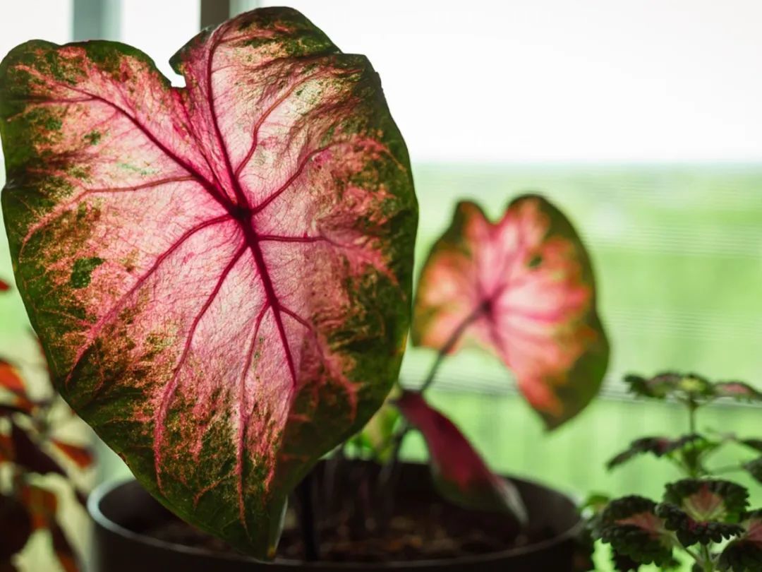 彩叶芋(花叶芋)是一种热带植物,是一种叶子斑斓的观赏植物,叶片上的斑纹有常见的白色、粉色、红色等。彩叶芋的品种不同形态也是不一样的,观赏性完全不一样。