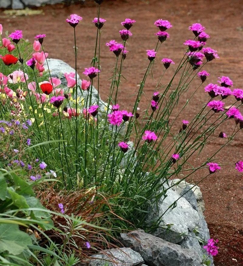 如果你的院子里沙质土含量特别高,特别是一些在海边的朋友,土壤的碱性会比较强一些,在这些沙质土中生长的植物并不是太多,可以栽种一些高雪轮,它们看起来像是低矮的蕨类植物一般,但却可以开出迷人精致的花朵。每年春天的时候,就能看到它们开出一簇簇的球形花朵,花色丰富,有常见的红色、粉色、白色等,植株高度一般就15~25厘米高。