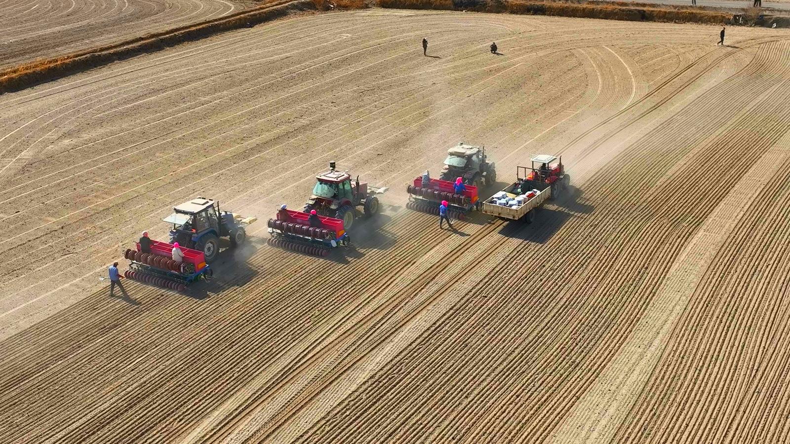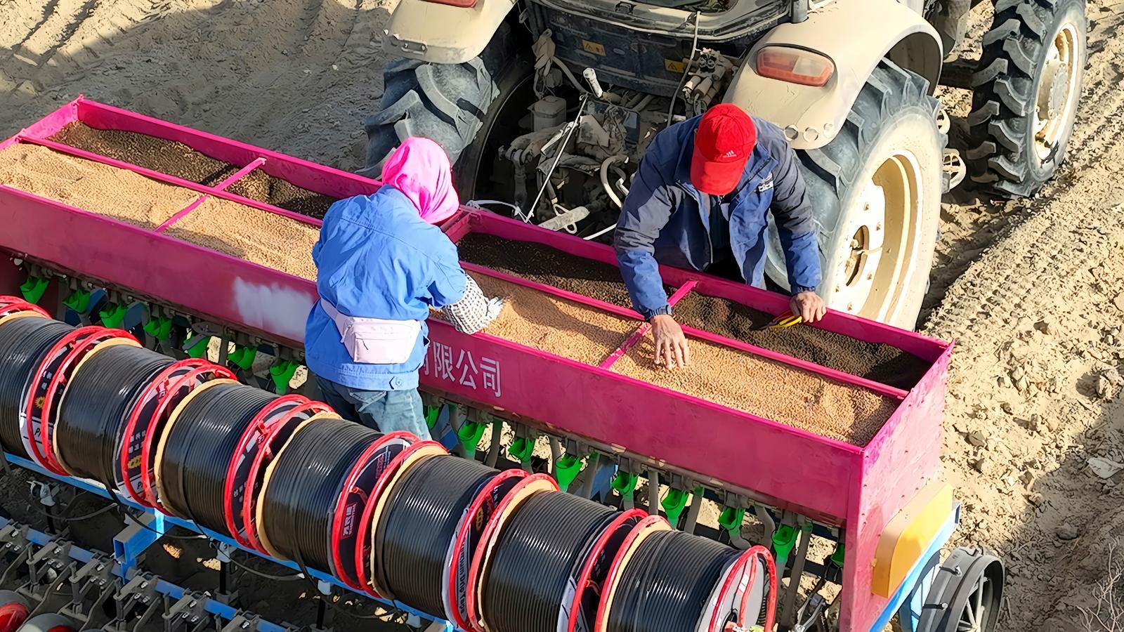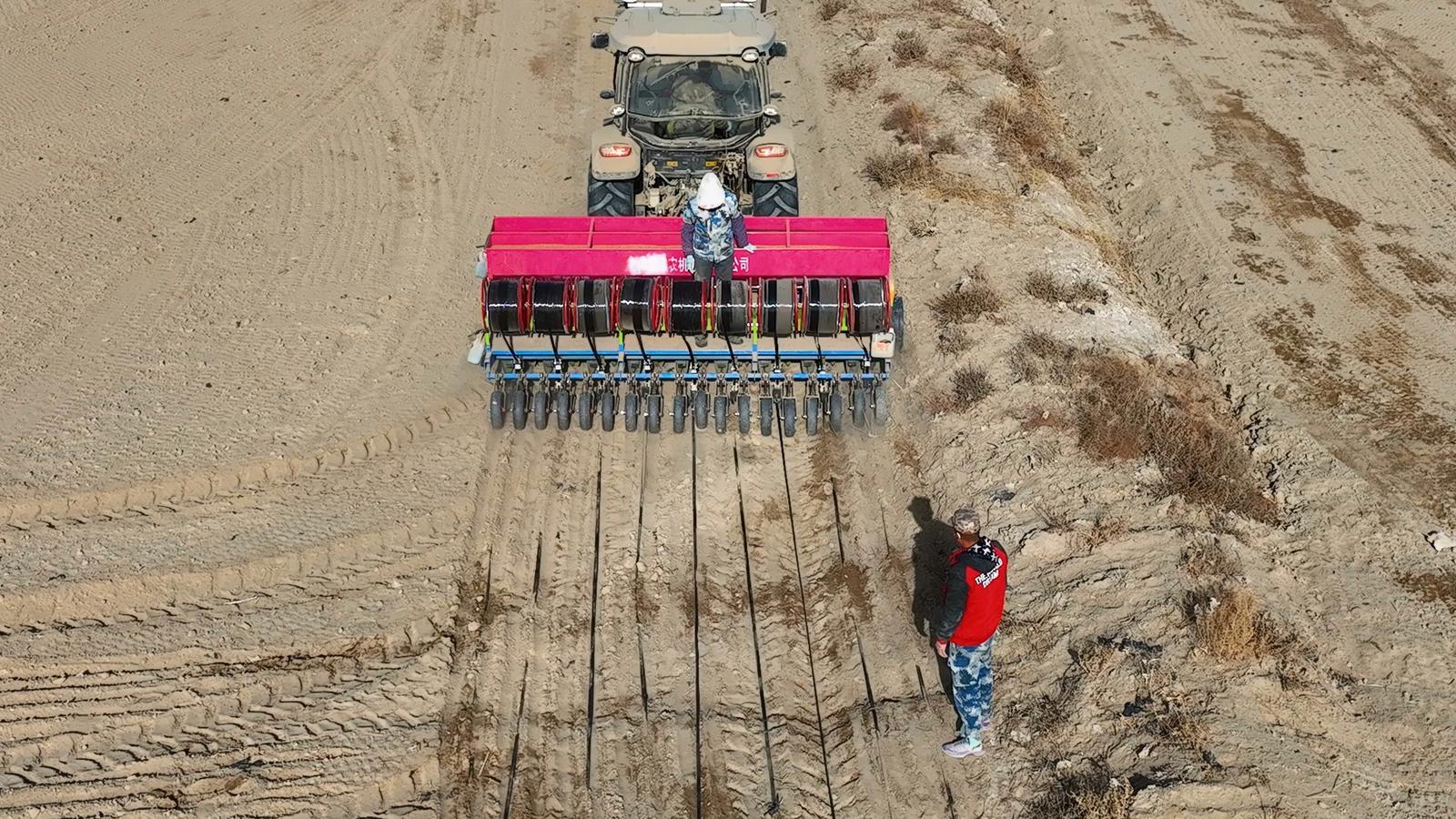 金塔县东坝镇小河口村党总支书记赵成兵说:“今年种植小麦的政策很好,我们村的合作社和中垦现代农业服务(安徽)有限公司合作,共种植了4700亩小麦,现在种麦子都是机械化操作,施肥、播种、铺设滴灌就一次性全部完成了,预计一周内全部播种结束。”