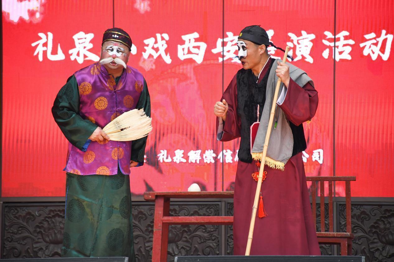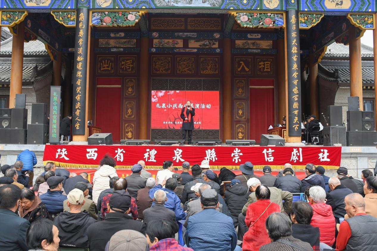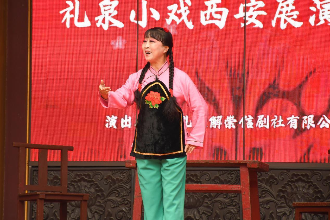 原来,这是礼泉崇信剧社在西安的小戏展演活动。礼泉小戏因剧目排演上的“题材小、场地小、乐队小”和“演员少、道具少、时间短”而得名。近年来,借助全国“小戏之乡”的传统优势,咸阳市把礼泉小戏创演与礼泉高质量发展情况紧密结合,精心打造了一系列以脱贫攻坚、乡村振兴等为题材的新时代文化品牌,唱出了群众的心声、展出了时代的精华。