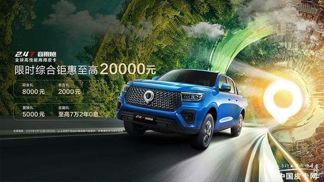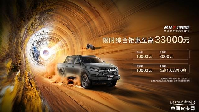 首先是商用炮与乘用炮两款车型,从3月1日—4月30日,现在购买这两款车型的消费者均可8000元现金礼、2000元老友礼、5000元置换礼以及至高7万2年0息金融政策,至高优惠可达2万元。而针对越野炮车型所推出的政策则要更为加码,同样截至4月30日,消费者购车可享1万元现金礼、3000元老友礼、1万元置换礼以及至高10万3年0息等金融政策,诚意满满。