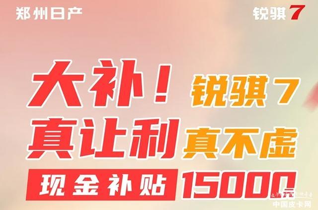 锐骐7是郑州日产主销的皮卡车型之一,包括两驱、四驱,长箱、标箱等多个版本。其柴油版本搭载了雷诺日产M9T发动机,匹配6速手动或采埃孚8AT变速箱,最大功率122kW,最大扭矩420Nm,官方公布的最低油耗为7.3L/100km。此外,该车的高配车型还会配有10英寸中控大屏、车联网语音控制、360全景影像、倒车雷达等实用配置。