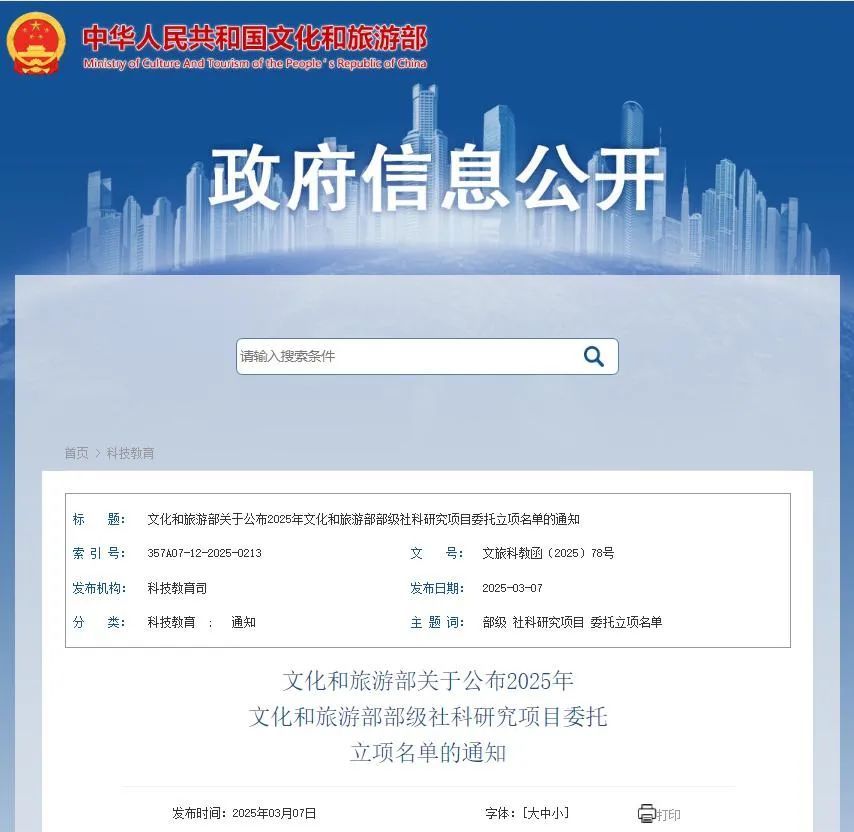 2025年文化和旅游部部级社科研究项目委托立项公布