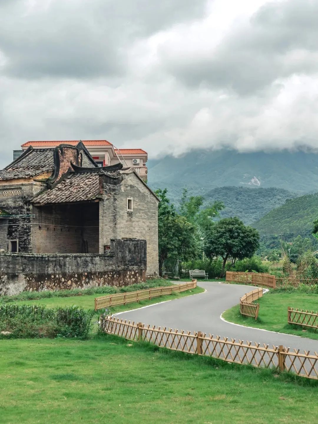 穿梭于古村的蜿蜒小径,尤其是那条标志性的S弯小路,简直自带滤镜!每周都有游人特地前来只为这个与大理喜洲异曲同工的场景,绿油油的草坪配上远处云雾缭绕的罗浮山,超级出片!