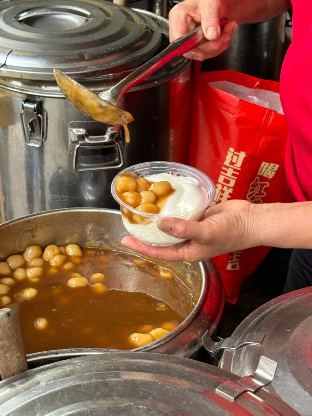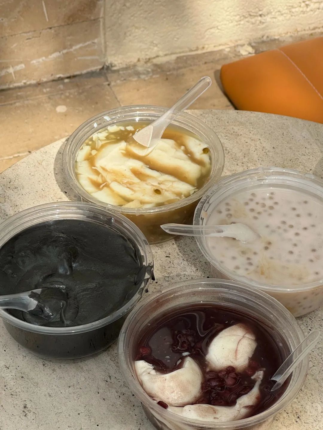 芝麻糊浓得像黑丝绸,红豆沙熬出沙,香芋西米露里芋头糯叽叽……可以双拼,每一款都可以试试,一碗也才七块钱。
