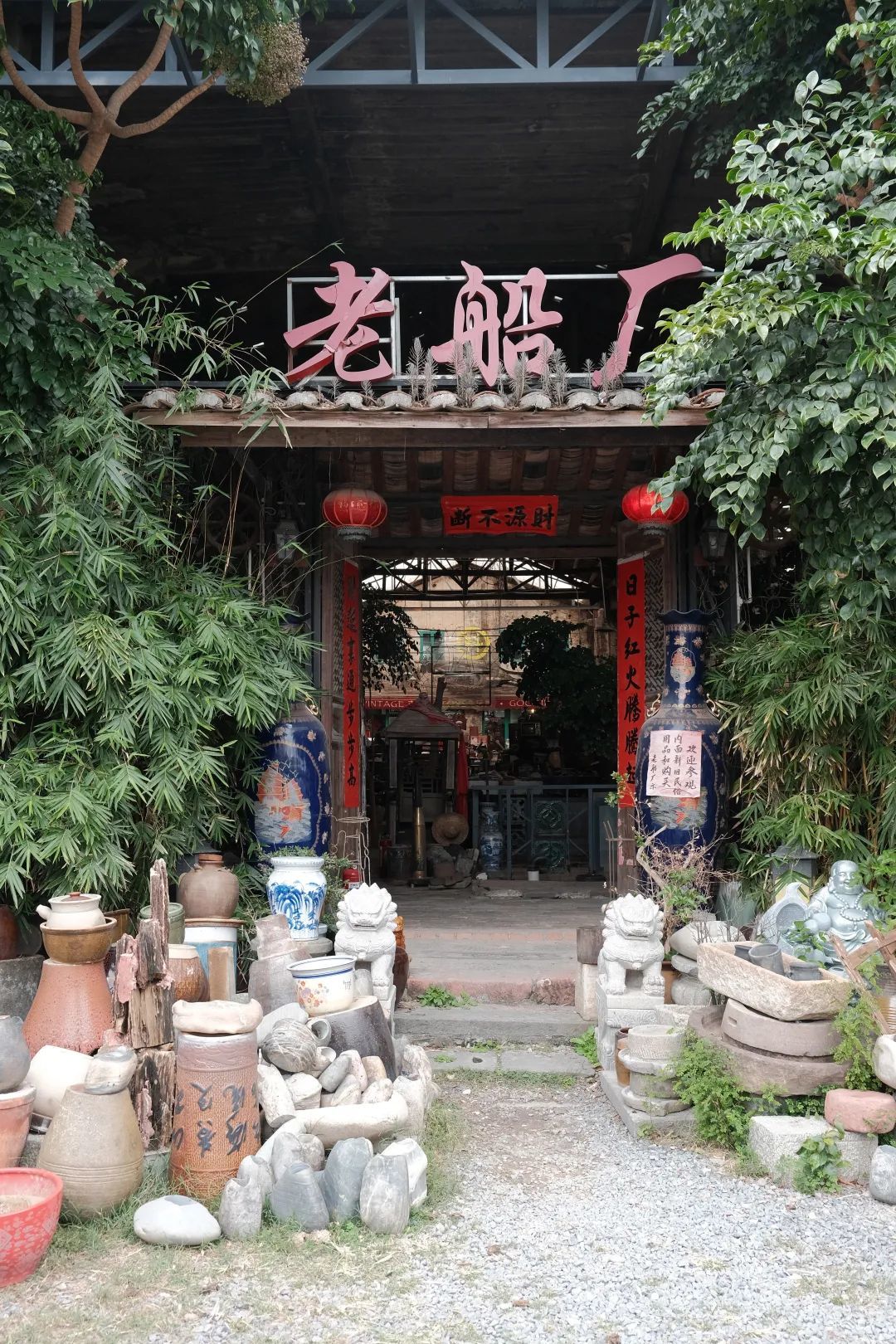 2018年主人将破败废弃的船厂改造一新,打造出了“潜珍阁”旧物仓,延续了老船厂的生命。从古董相机到老式留声机,从旧古筝到老式缝纫机......每个物件都是主人从各地淘回来的,自带着故事感,可以来看看有没有你心仪的宝贝。