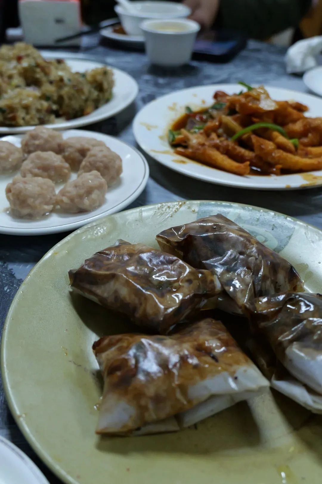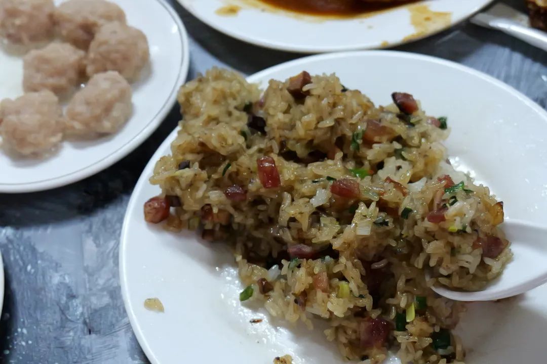 这次滚妹吃了刘雨鑫推荐的扁记早茶,生炒糯米饭混着油脂满满的腊肉,纸包排骨是将排骨切块后腌制,随后用纸一个个包好,再放入锅中煎煮。