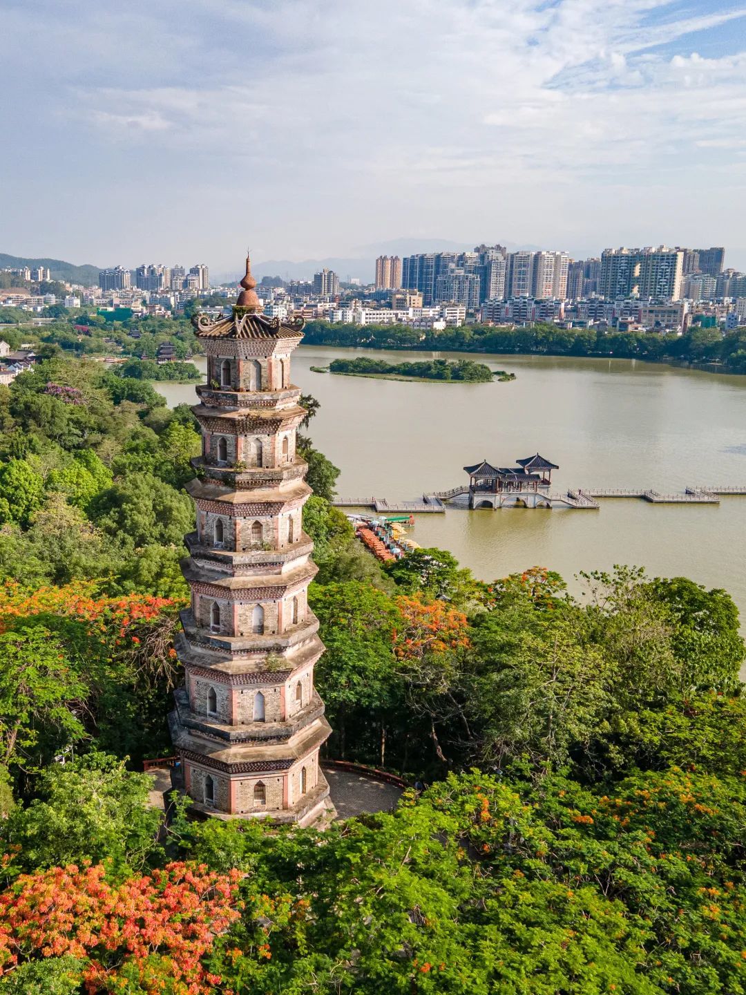 建议在平湖门开启穿越之旅。始建于唐代的泗洲塔是惠州西湖的标志性建筑,苏轼曾在此赏月吟诗,登塔可俯瞰西湖全景,平湖碧波与远山如黛尽收眼底。