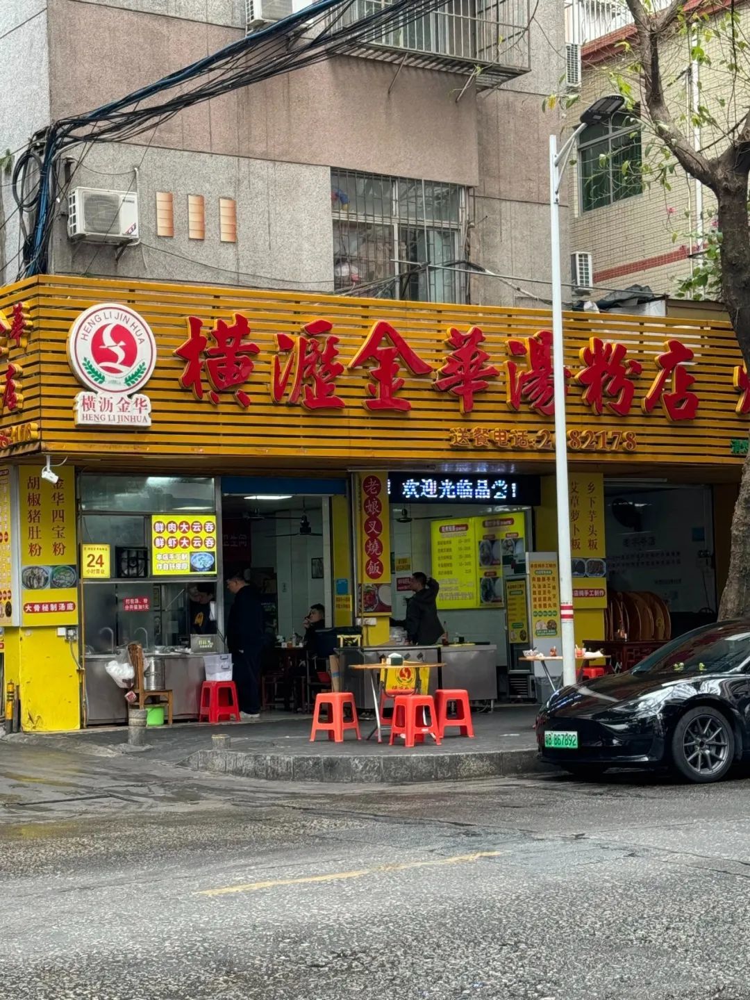横沥汤粉是惠州的传统小吃,起源于横沥镇。这家位于桥东新建路的横沥金华汤粉店是开了几十年的老店,总店在横沥镇,河粉都是特地从横沥老家运来,包括卤猪脚筋,卤蛋,卤小肠。