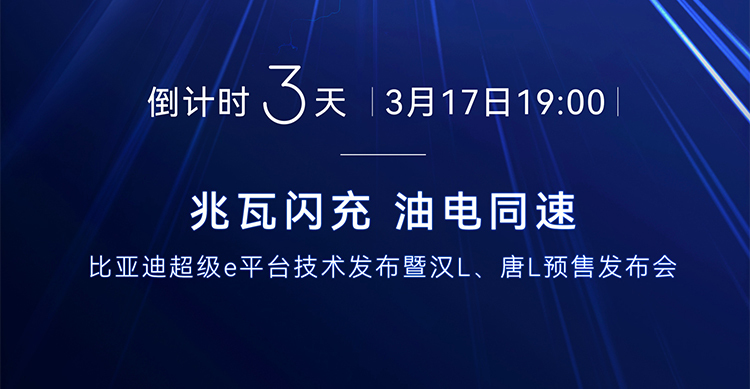 比亚迪今天宣布,将在3月17日发布会上推出兆瓦闪充技术,而且汉L、唐L两款车也要同日开启预售。