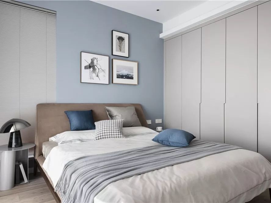 一张大床占据卧室的中心位置,床头两旁放上床头柜,再找个合适的位置放上衣柜,然后就完事了!