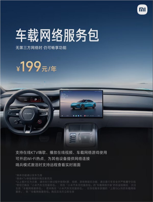 站长之家3月14日 消息:近日,小米汽车正式推出了车载网络服务包,售价为199元/年。用户可以通过小米汽车App轻松选购这一服务,享受更加便捷的车载网络体验。