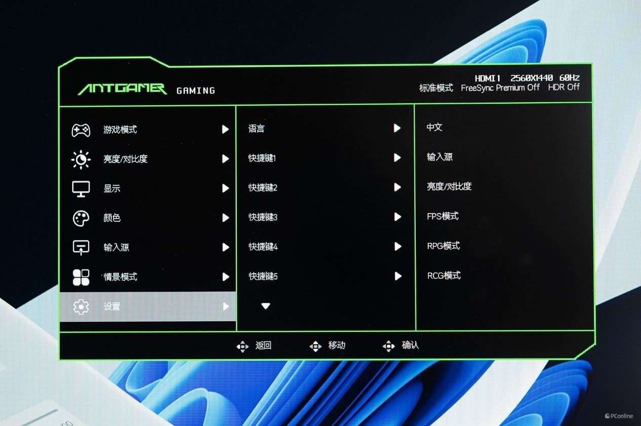 OSD菜单提供了丰富的功能选项,用户可以根据自己的使用场景和个人喜好,对显示器进行全方位的调节和优化,充分发挥显示器的性能优势。例如我们上面提到的快捷按钮,在OSD界面中可以自定义功能,如果你是电竞玩家,可以切换为不同类型的游戏模式,方便快捷切换。