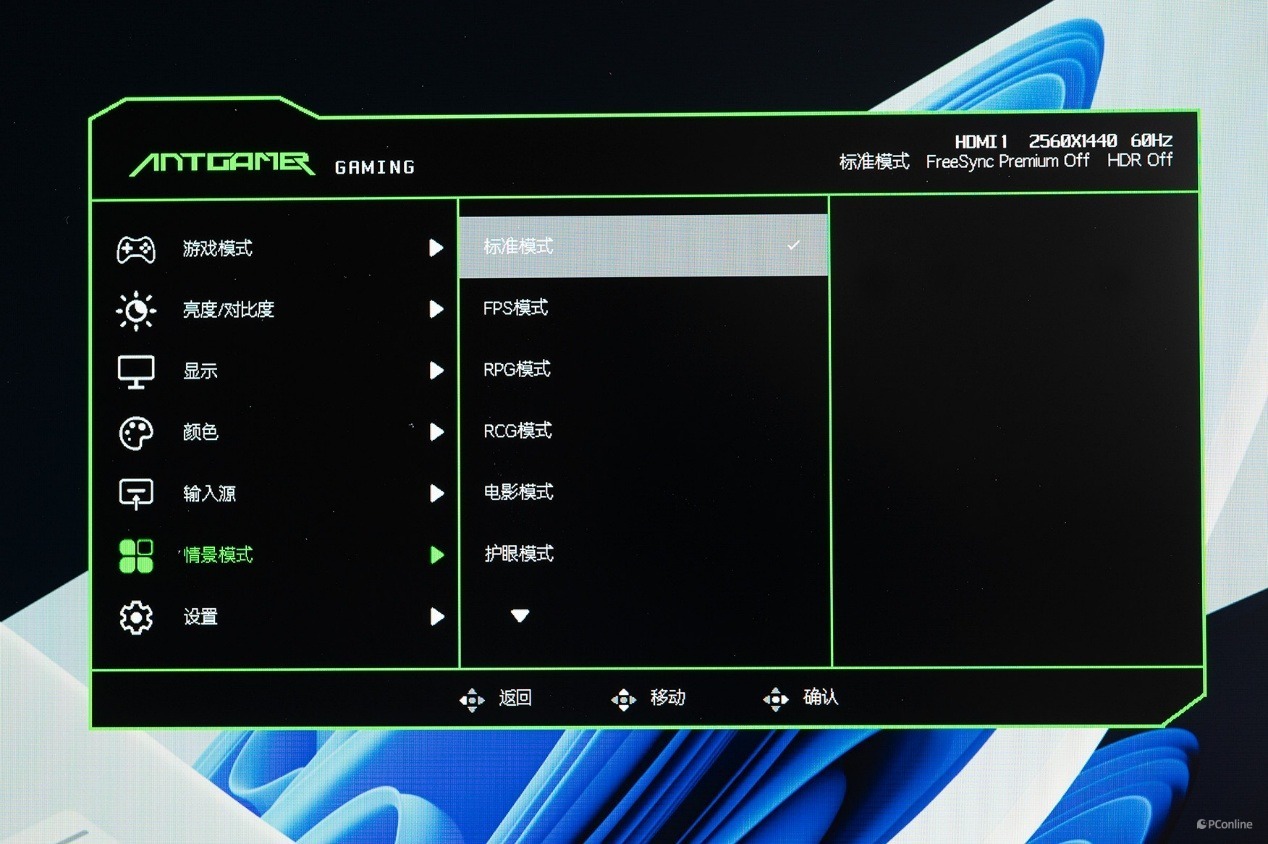 OSD界面则延续了蚂蚁电竞一贯的黑绿色电竞风格,并采用了层次分明的多级菜单设计。这种直观且易于使用的布局方式,使用户能够快速找到所需的设置选项,极大地提升了菜单的可读性和操作的便捷性。