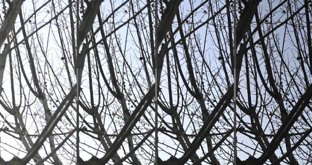 从图中可以看到这款镜头f/1.2全开光圈时一些树枝边缘存在轻度紫边,当光圈收缩到f/1.8,树枝边缘的紫边明显减轻,已经可以忽略。从实拍来看,这款镜头主要是轴向色差,稍微收小光圈便能够解决。