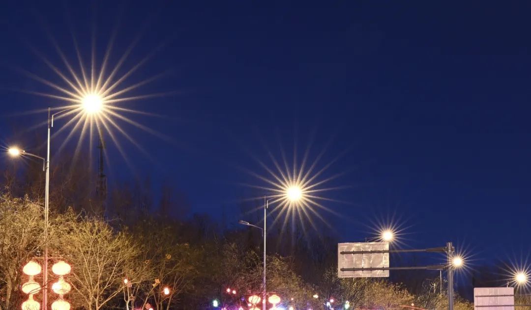 星芒效果,属于光线绕射的特殊现象,一般导因于镜头光圈缩的太小。星芒的形状对称与否,完全取决于镜头的光圈叶片形状,而芒数的多寡则取决于叶片的片数。奇数片的镜头出来的光芒数是叶片数的两倍,也就是说光芒会向两个方向延伸,比如叶片数为9,光芒数就为18。而偶数光圈片的镜头出来的光芒数和叶片数相等,有一个方向延伸的光芒和相对的重合了。笔者下面用这款35mm镜头F11的小光圈,拍摄远处路灯: