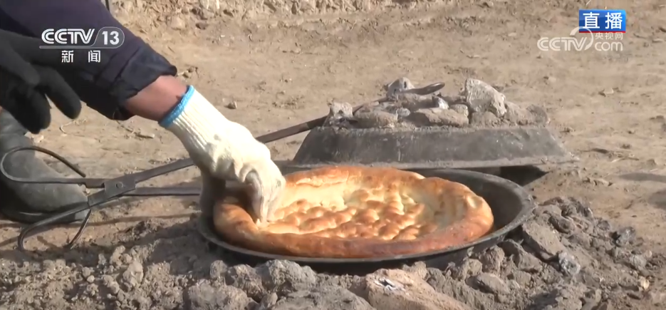 努尔兰的老伴现在正在烤制一种当地叫做“塔帕”的馕饼。在牧区,生活都是能简则简,像这种塔帕不用大的馕坑,烧的是晒干的羊粪,两口锅扣在一起上下给火,不用翻面,不到15分钟就能烤出一个香喷喷的馕饼。转场的时候,大家也会带一些在路上吃。又简单又方便。
