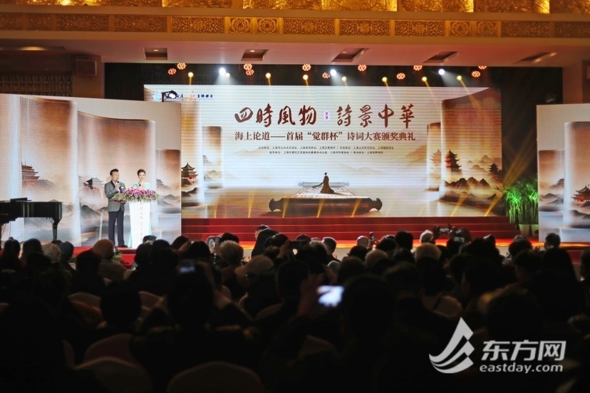 东方网记者柏可林3月15日报道:昨天下午,海上论道——首届“觉群杯”诗词大赛颁奖典礼在上海玉佛禅寺举行。来自全国各地的诗人和各界贤达齐聚一堂,揭晓“觉群杯”诗词大赛成果,并邀请艺术家们精彩演绎其中的优秀作品。