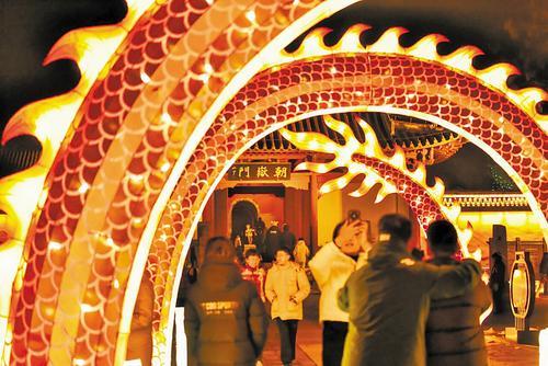 2月1日,在曲阳北岳新春灯会上,游客们正在拍照打卡。刘雪峰摄