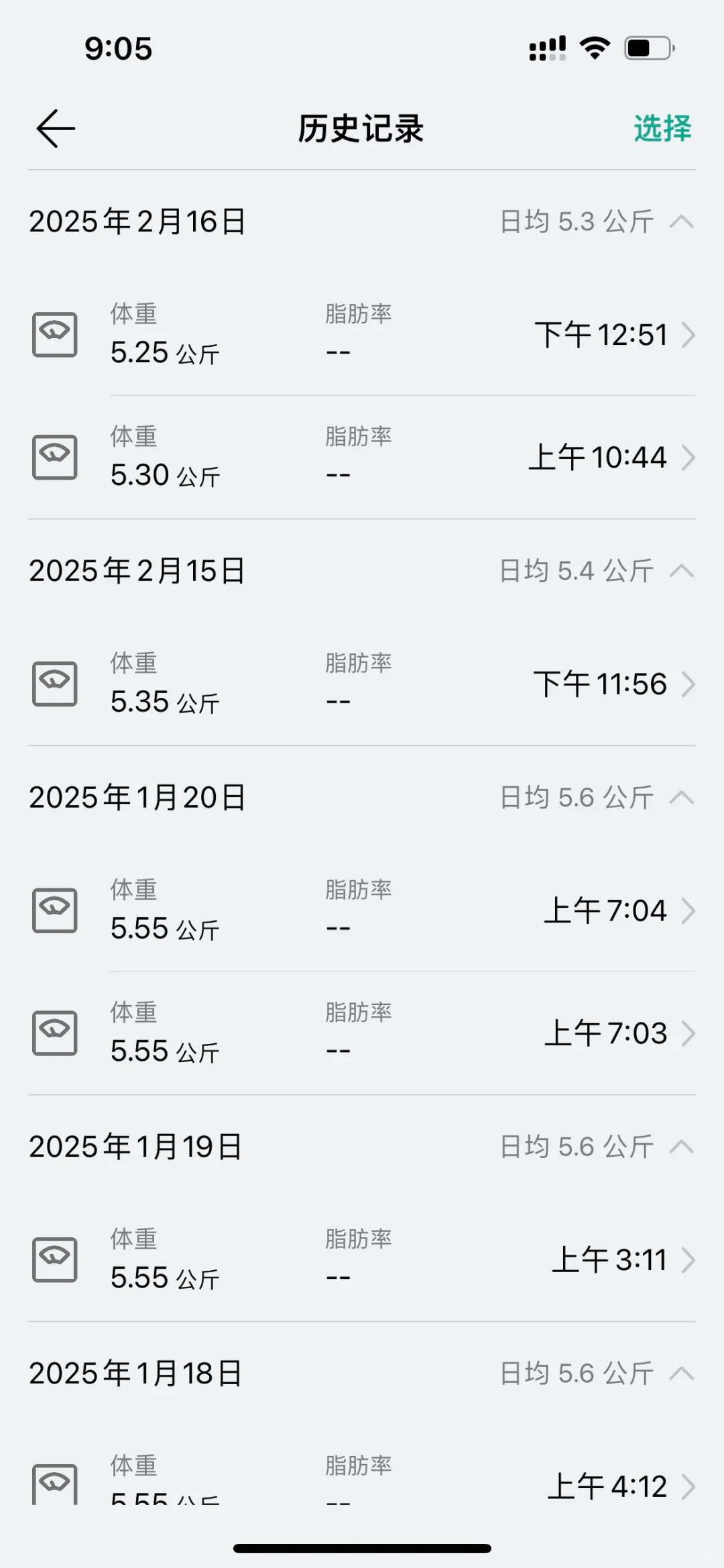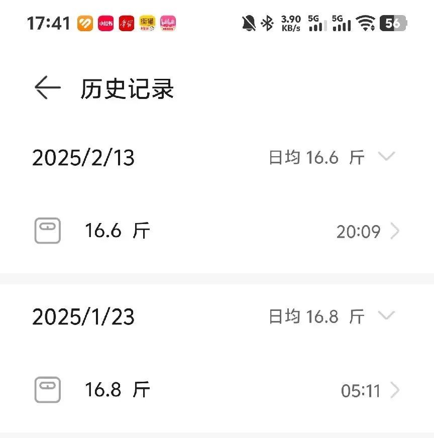不信你瞅瞅,小猫1月18日的体重是5.55kg,到了2月16日就降到了5.25kg。