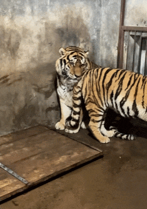 其中一只叫西西的12岁东北虎的表现简直笑洗个人哈哈哈!