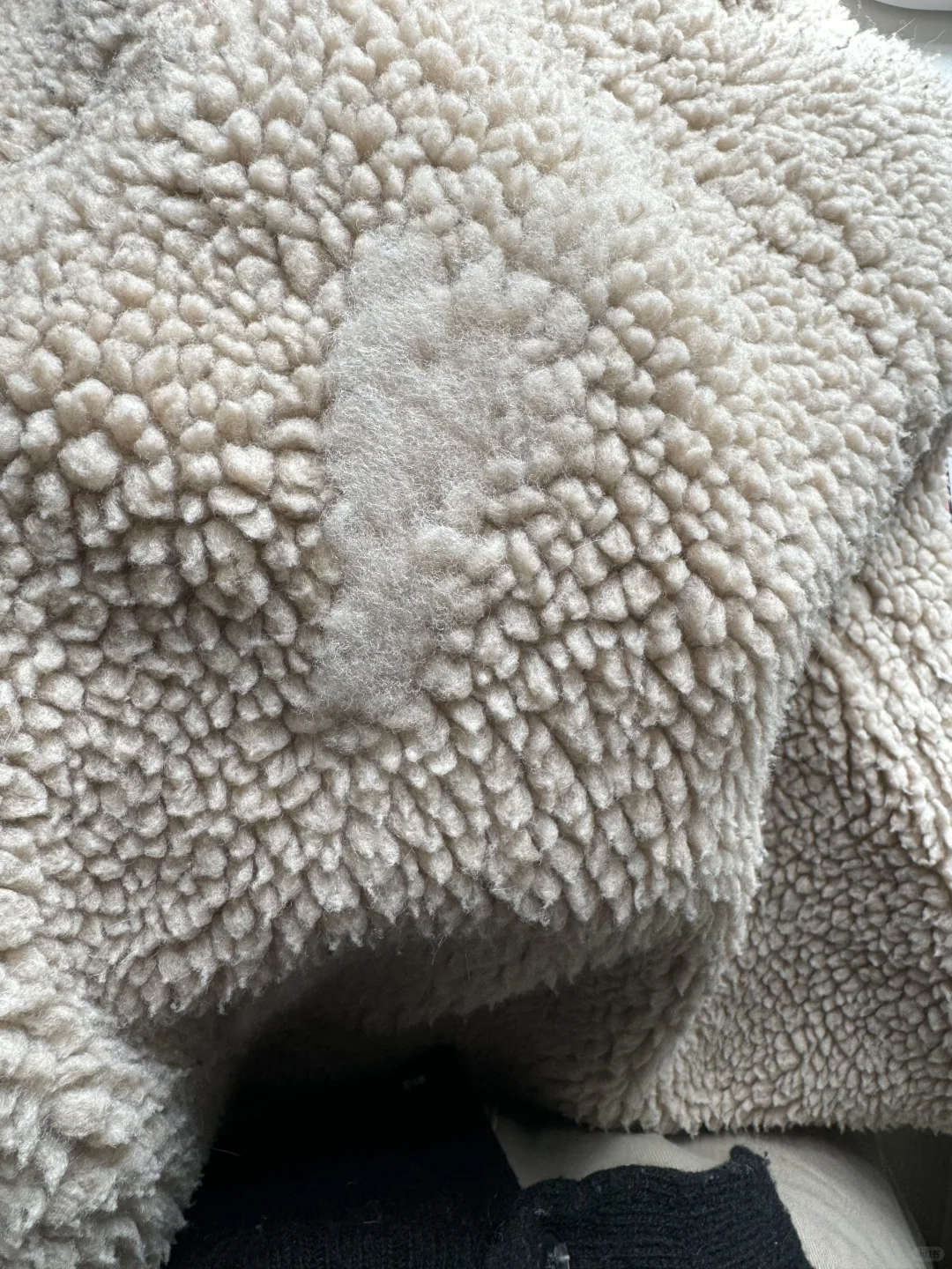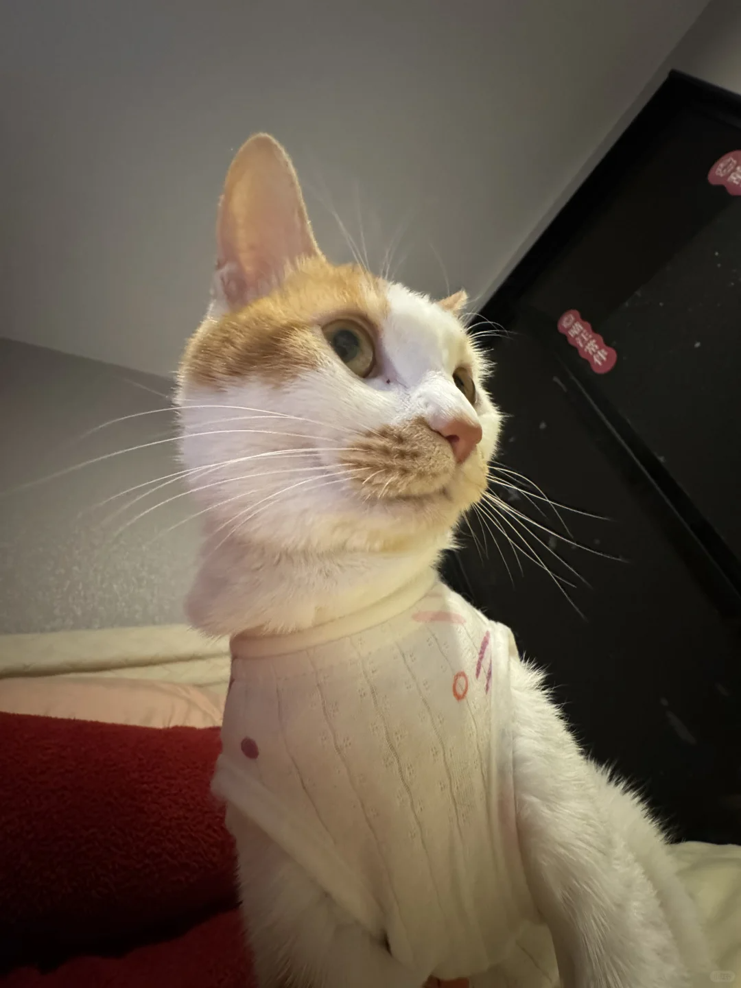 小猫熬了个通宵,帮她把摇粒绒都舔直了。