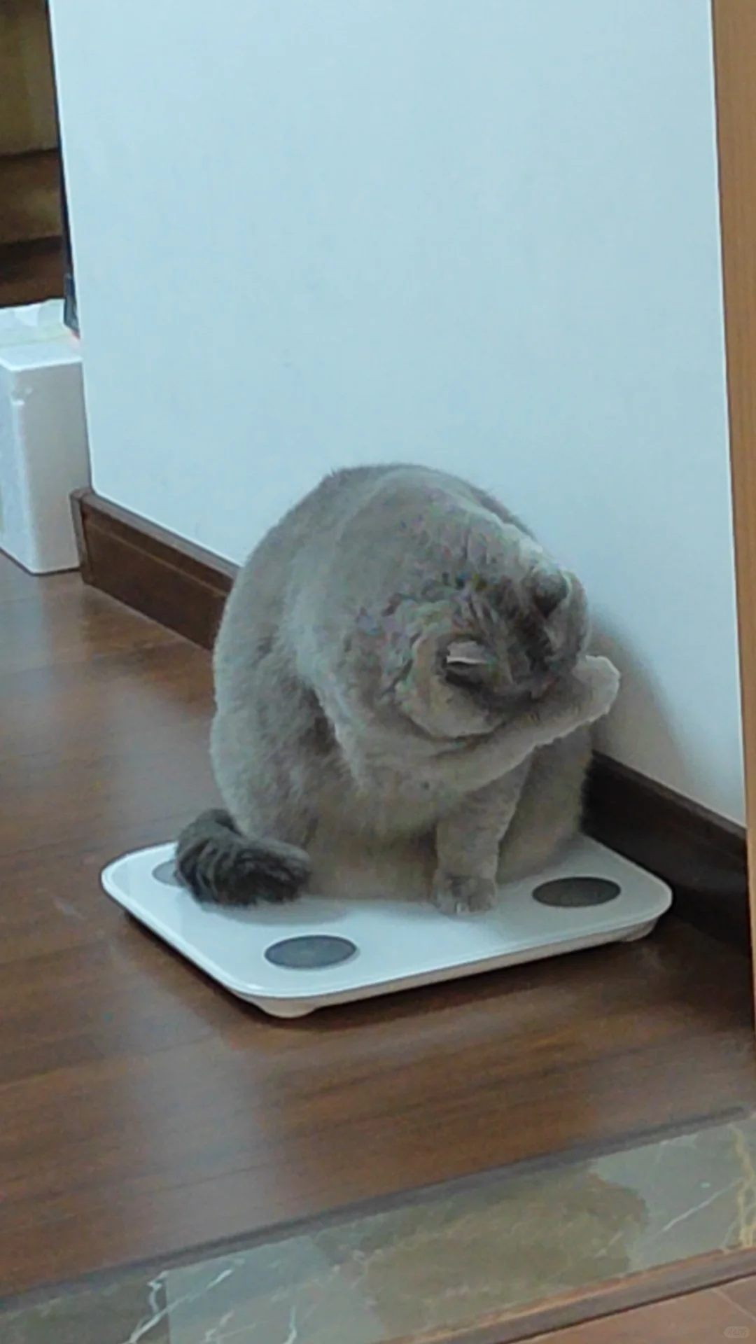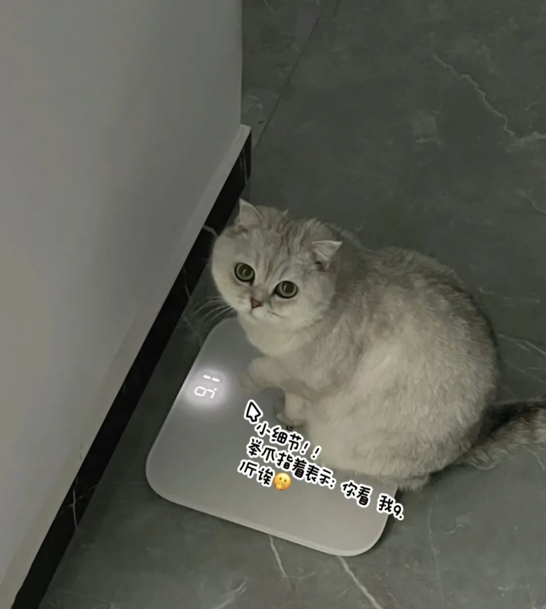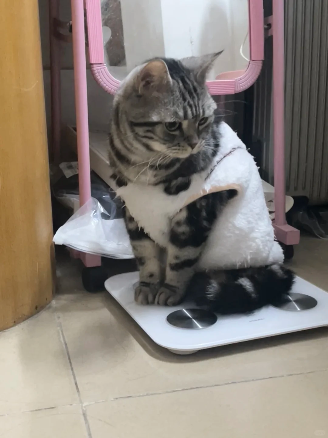 小姐姐@Q_7 说自己的小猫是一个身材管理专家,因为它每天都要自己跑到体重称上去称体重。