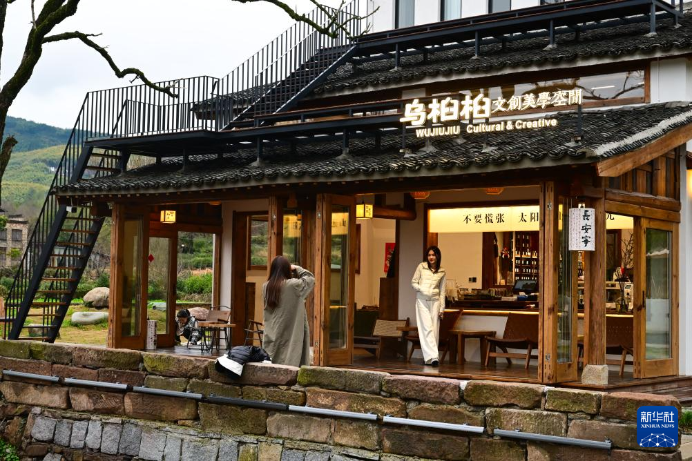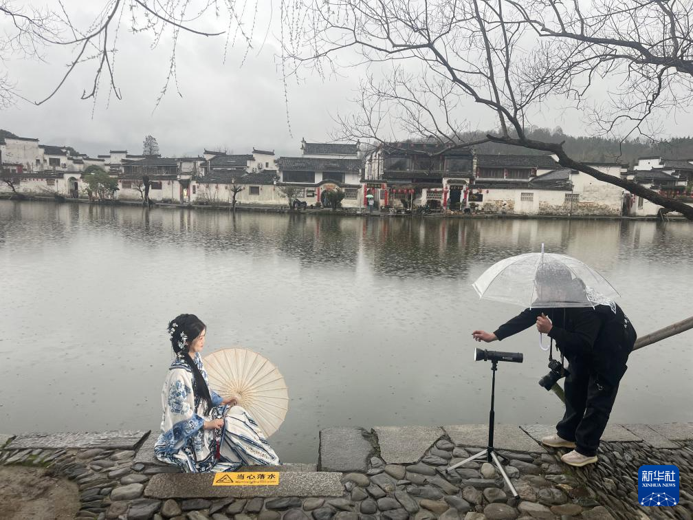 3月13日,游客在黟县宏村镇塔川村游玩。