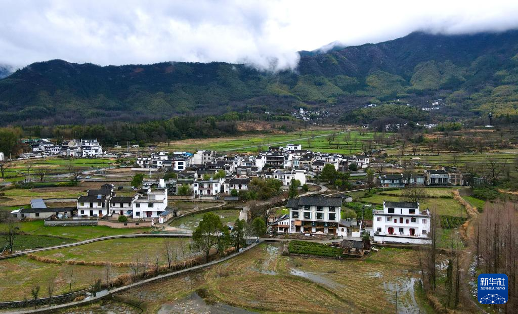 3月13日拍摄的黟县宏村镇塔川村(无人机照片)。
