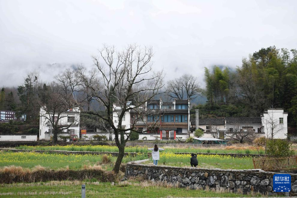 春日,安徽省黄山市黟县宏村镇乡村处处春意盎然,游人徜徉其间,逛古村、看古建、赏花海、品咖啡,感受诗情画意的生态乡村。