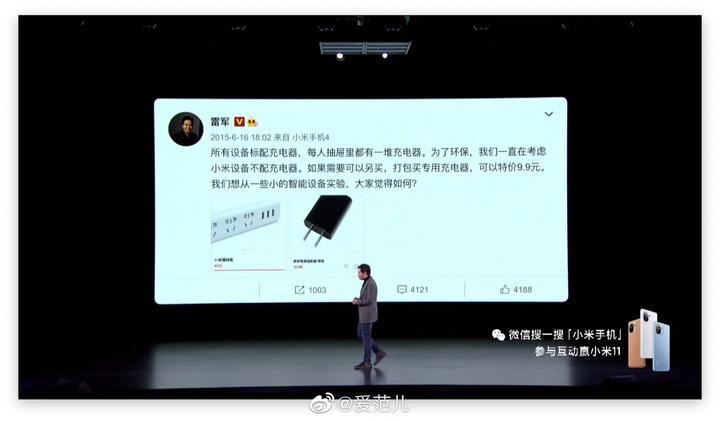 只不过雷军想要做一个「实验」,于是在小米 11 发布的时候尝试「轻装上阵」,取消了包装内的充电头甚至是数据线。