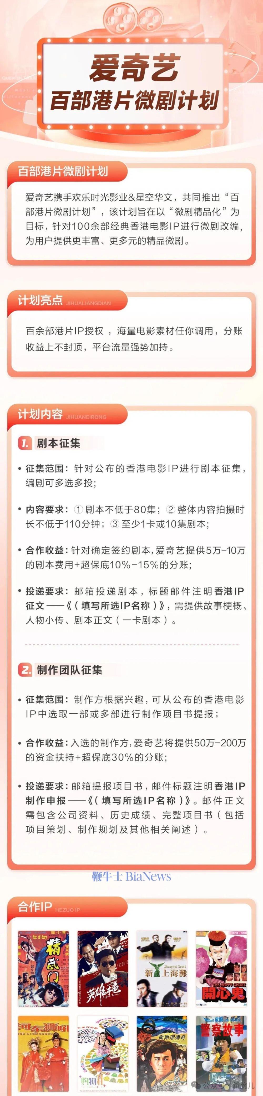 3月15日,爱奇艺对外发布了百部港片微剧计划,针对100余部经典香港电影IP进行微剧改编。