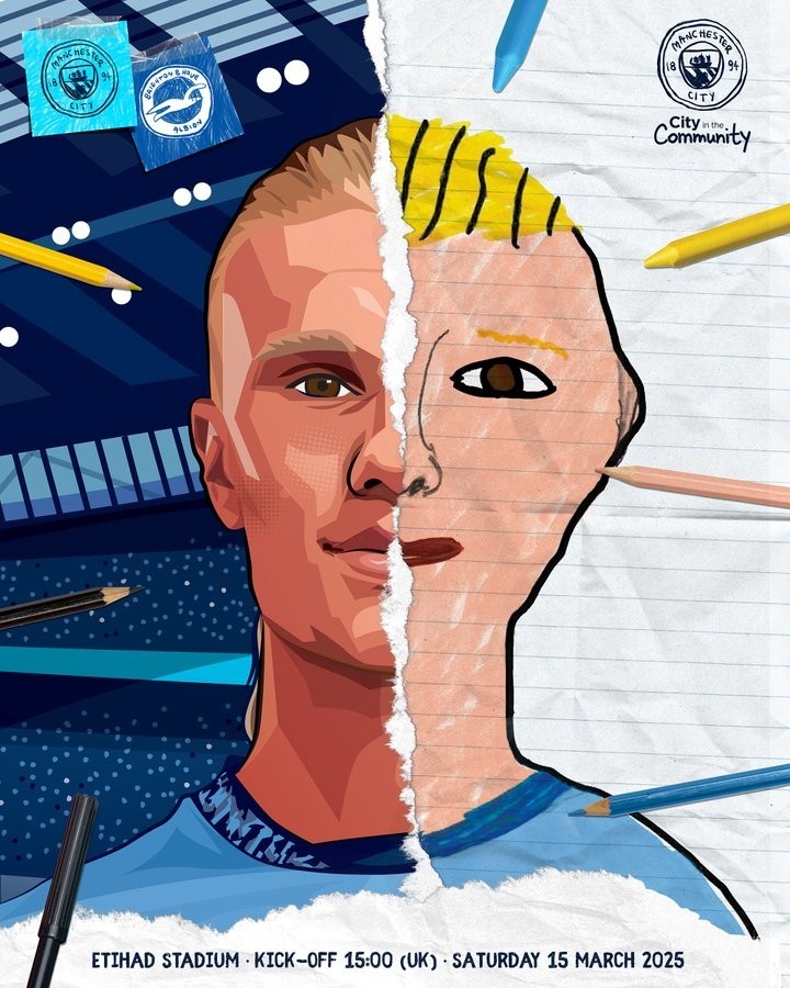 北京时间今晚23点,曼城将迎来英超第29轮主场对阵布莱顿的比赛,赛前,曼城官方在社交媒体上晒出了本场比赛的预热海报。