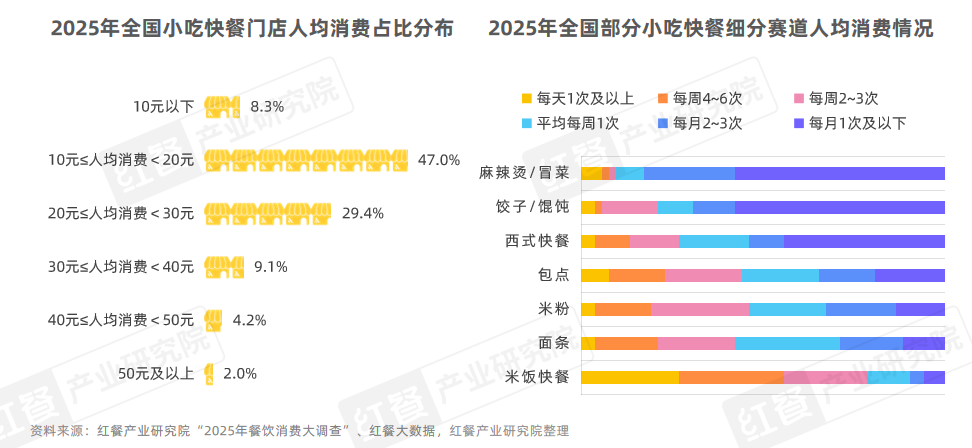 在当前消费者信心不足的市场大环境下,主打刚需、性价比的小吃快餐更容易形成高频复购。红餐产业研究院“2025年餐饮消费大调查”显示,超过六成的消费者每周至少消费1次米饭快餐、米粉、面条、包子等产品。