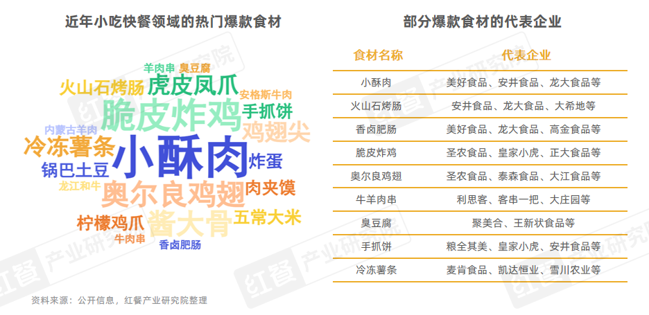 在食材领域,众多食材供应链企业推出了多款适配小吃快餐门店的热门爆款产品,如小酥肉、虎皮凤爪、奥尔良鸡翅、脆皮炸鸡、香卤肥肠、火山石烤肠、冷冻薯条、手抓饼等。这些产品不仅帮助小吃快餐品牌精准把握餐饮市场的爆品趋势,还为其打造高效、便捷的出餐体验提供了有力支撑,从而助力品牌抢占市场先机,赢得消费者的广泛认可,筑牢了品牌发展的坚实基础。